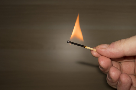 Brightly burning match head glowing in contrast to dark background, representing passion, light, and intensity