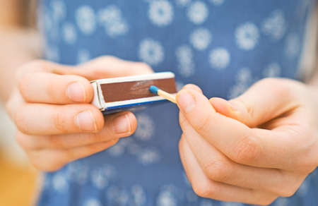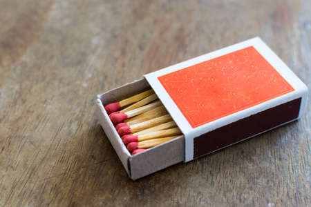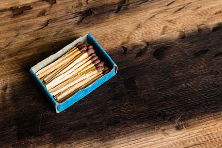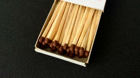 Close-up,the old matchstick in the old box,macro photo,has copy space,original object
