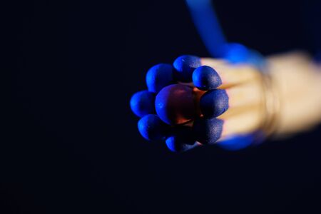 Lots of matches on a blue background. The concept of chaos and order. Selective focus