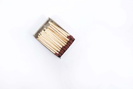 Portrait of matches with brown head in a box. Isolated on the white background.