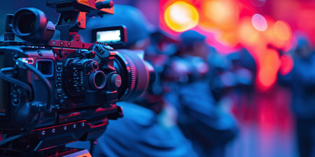 Detail image of Cinema Camera on Film Set, Behind the scenes background, film crew production