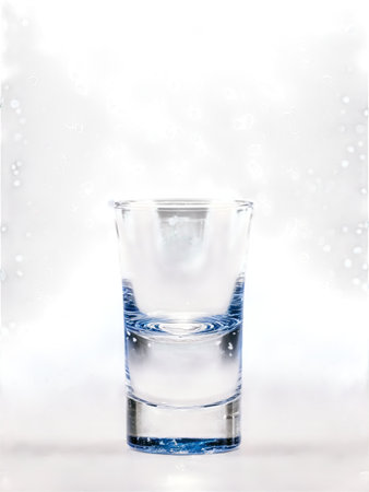 Detailed shot of a glass of water with a soft focus background and a gentle ripple on the surface