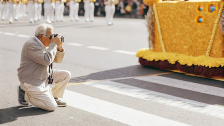 A woman is capturing the moment with her camera at a lively event, sharing the joy of leisure and recreation with a crowd of people AIG50