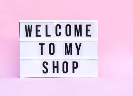 Sale label sign in front of shop, against the background of a clothing store. The concept of seasonal sales and discounts