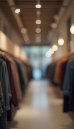 In a contemporary clothing store, racks display an assortment of fashionable apparel. The bright lighting enhances the inviting atmosphere, making it ideal for shoppers to explore. Bokeh. Generate AI.