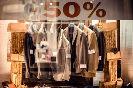 NAPLES, ITALY - MARCH 19, 2015: Men's fashion store window with jackets at night in Naples, Italy