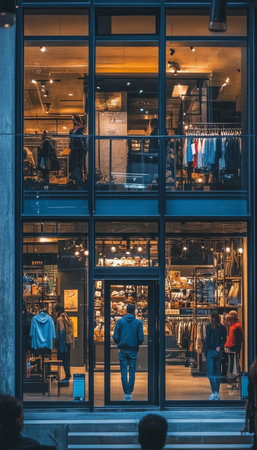 Modern Clothing Boutique Exterior with Large Window Display and Contemporary Interior Design, Ideal for Fashion Retail Concepts and Shopping Experiences - Generative AI
