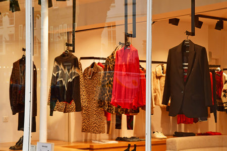 Fashion store interior with a variety of clothing and accessories. Retro style