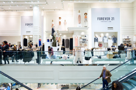 NEW YORK - MARCH 19, 2016: inside of Forever 21 in New-York. Forever 21 is an American chain of fast fashion retailers with its headquarters in Los Angeles.