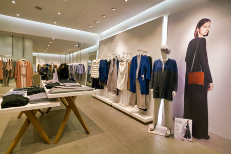HONG KONG, CHINA - CIRCA JANUARY, 2019: interior shot of H&M store in Hong Kong. Hennes & Mauritz AB is a Swedish multinational clothing-retail company known for its fast fashion clothing.