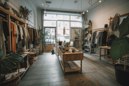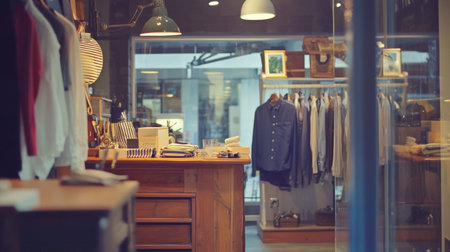Fashion store interior with a variety of clothing and accessories. Retro style