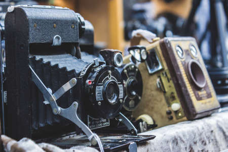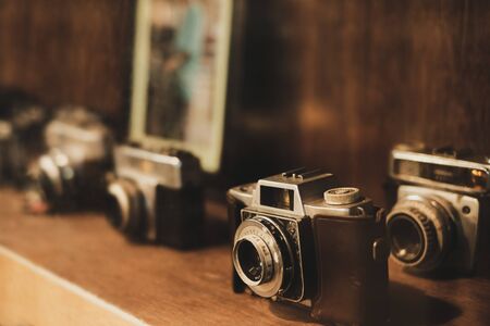 several old photographic machines. Antiques concept.