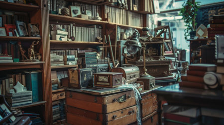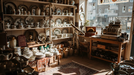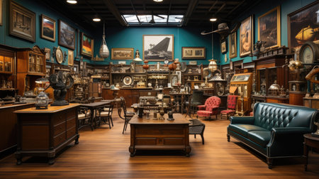 A cozy interior of a vintage store filled with antiques and collectibles. The image captures the nostalgic charm and character of the space, making it suitable for themes related to history, nostalgia, and vintage decor.