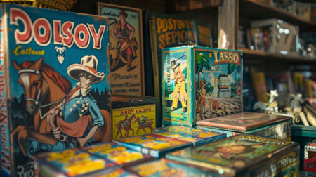 A vintage game of Cowboy Lasso with its charmingly retro packaging and illustrations beckons visitors to give it a try