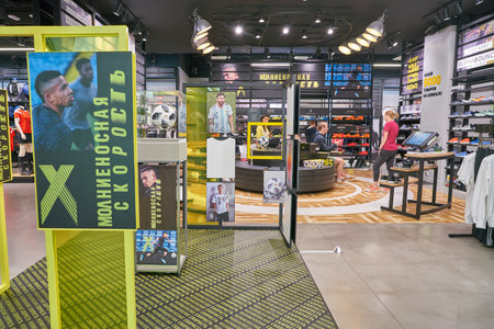 MOSCOW, RUSSIA - CIRCA SEPTEMBER, 2018: interior shot of Adidas store in Moscow.