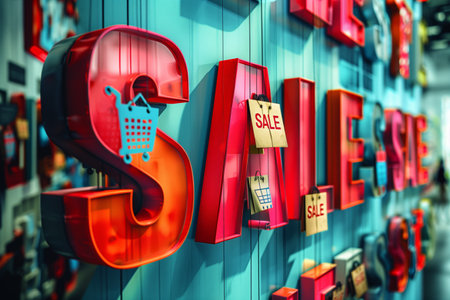 The image displays a vibrant SALES sign in creative 3D letters, each showcasing different shopping and sale icons, symbolizing an enticing sale event.