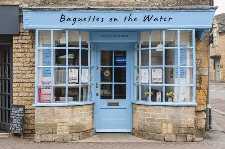 BOURTON ON THE WATER, UK - MAY 28, 2018: The front entrance to the traditional art shops in Bourton-on-the-Water, The Venice of the Cotswolds