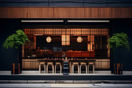 Generative AI, black exterior cafe, restaurant or shop. Urban building, street facade
