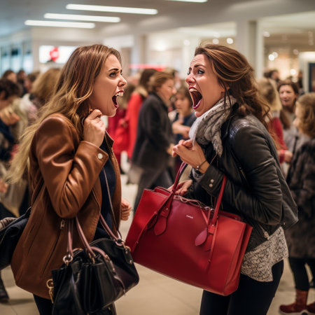 Shoppers fighting over discounted items during a Black Friday sale. Symbol of a major environmental problem caused by urban overconsumption waste. Abstract image
