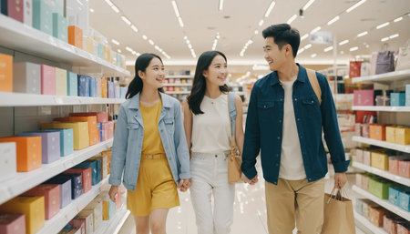 Group of young asian people shopping in the supermarket. Group of asian people shopping in supermarket. ai generated.“This image was created using generative artificial