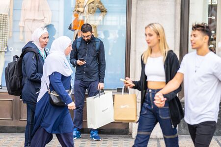 London, UK, July 14, 2019. People shopping in crowded Street London. Selected focus