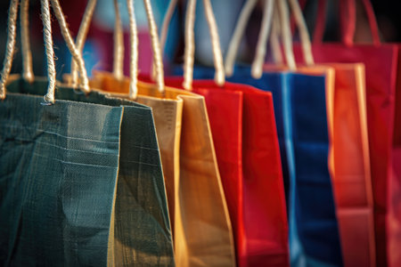 Vibrant Shopping Bags in a Row, Retail Therapy, Fashion, Consumerism, Style, Commerce