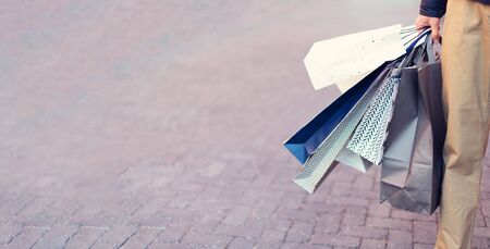 close up hands shopper with bags. High quality and resolution beautiful photo concept