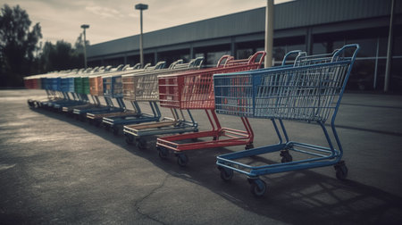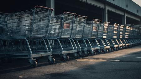 Row of shopping carts. Generative AI