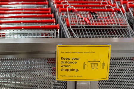 Sydney, Australia 2020-04-27 Poster about keeping social distancing when shopping to prevent spreading of the COVID-19 virus