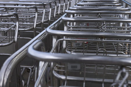detail of a row of baggage trolleys for an airline terminal