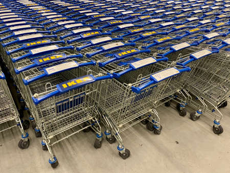 Kuala Lumpur, Malaysia April 28, 2020 : Close up IKEA trolley in the IKEA store.