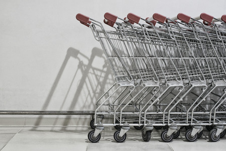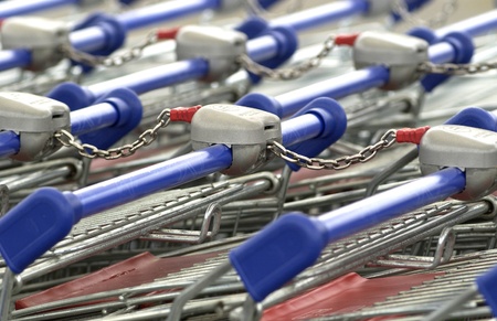 Shopping Cart Trolley in row Retail department store Consumer business