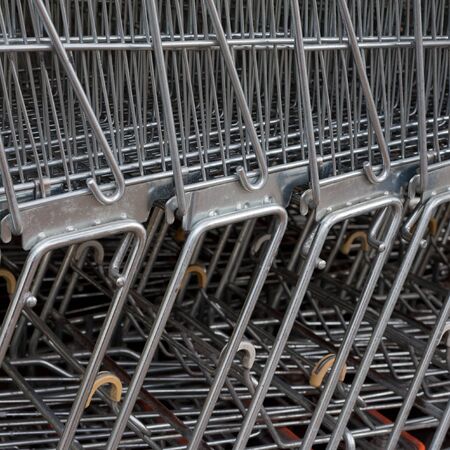 Metal shopping carts, detail row of shopping carts