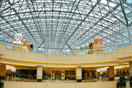 MOSCOW - JANUARY 4: Afimall on January 4, 2013 in Moscow, Russia. Exhibition of the giant Russian dolls - Matryoshka - in height from 6 to 13 meters in Shopping complex Afimall City.