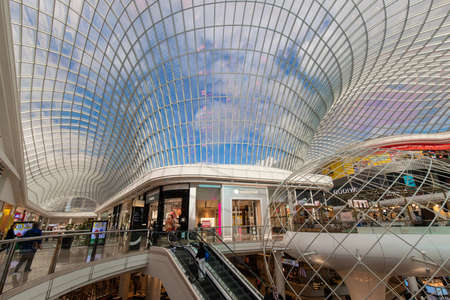 Melbourne, Australia - April 1, 2022: Escalator and ceiling architecture of Chadstone shopping centre.