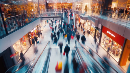 Vibrant holiday shopping scene in bustling modern mall
