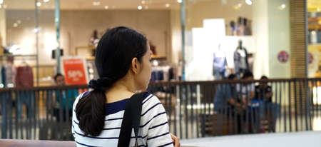DUBAI, UNITED ARAB EMIRATES - APRIL 25, 2018: Bored men waiting for women to finish shopping, the interior shopping Mall