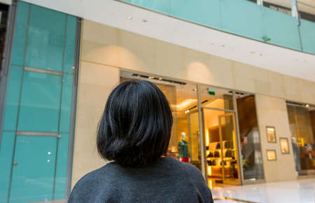 A Chinese female tourist looking at the luxury shops at the Dubai mall, one of the world's largest shopping malls in UAE
