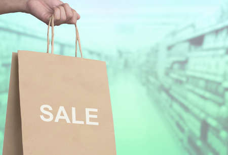 Shopping bag hanging in a clothing store outlet. Concept of consumerism
