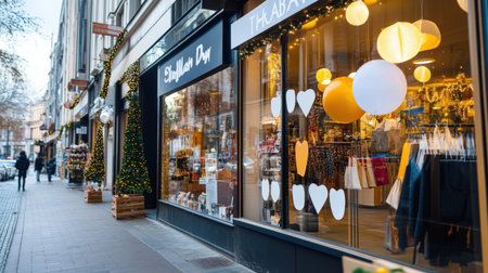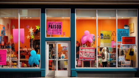 Mockup storefront, shop facade and window. Template for storefront window, classic boutique design. Empty window, retail front, store facade, traditional storefront style. Realistic style photo