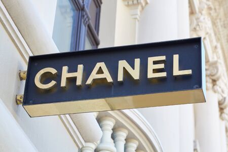 MONTE CARLO, MONACO - AUGUST 21, 2016: Chanel fashion and jewelry luxury store golden sign in Monte Carlo, Monaco.