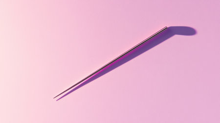 A sleek metal needle rests on a soft pink background, casting a delicate shadow. The composition emphasizes minimalist design and vibrant lighting, perfect for creative projects.