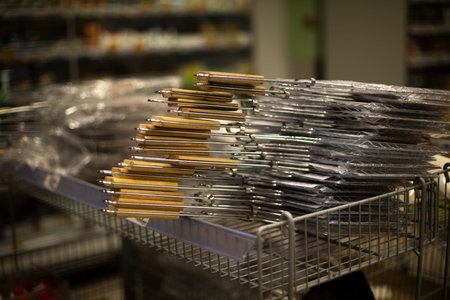 Grill grills. Sale of goods in store. Grill market. steel meshes market.