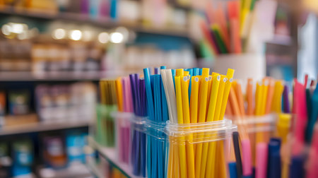 Colorful straws arranged in a container, perfect for arts and crafts, parties, or drinks.