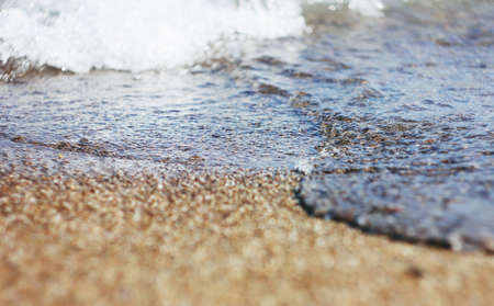 Soft wave of the sea on the sandy evening beach.Soft focus,blurred image.Copy space.