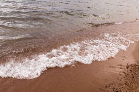 Scene as background, sea and sand of wet beach wet by the waves of the sea.