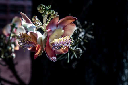 Beautiful close-up of Cannonball tree flowers (Couroupita guianensis)