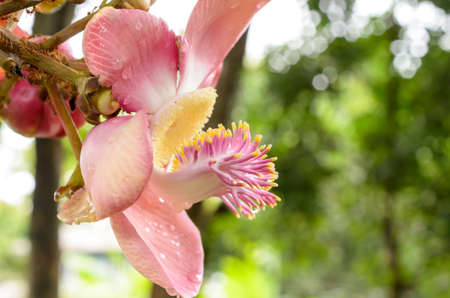Cannonball tree Couroupita guianensis Aubl with beautiful and fragrance flowers