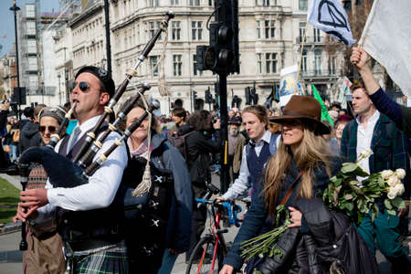 London, United Kingdom, 15th April 2019:- Extinction Rebellion protesters in Parliament Square, protesting about climate change.