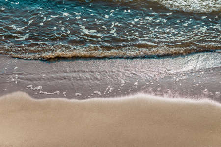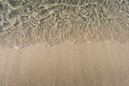 Top view of texture waves sandy beach.